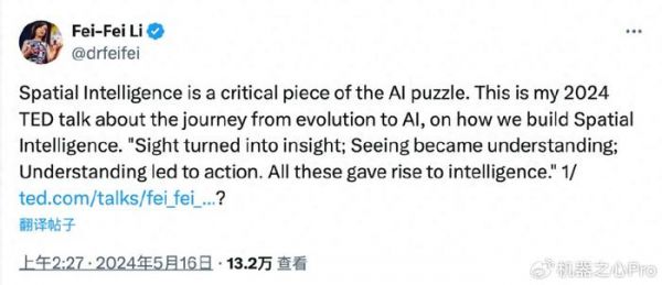 https://x.com/drfeifei/status/1793753017701069233