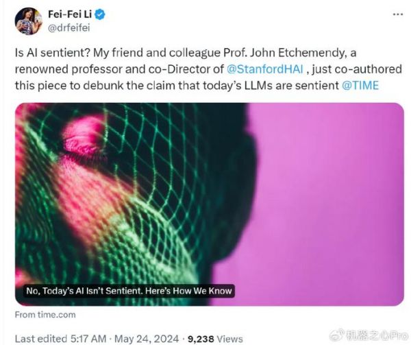近日,李飞飞连同斯坦福大学以人为本人工智能研究所 HAI 联合主任 John Etchemendy 教授联合撰写了一篇文章,文章对 AI 到底有没有感觉能力(sentient)进行了深入探讨。
