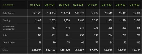 耀眼的数据中心业务,也稍稍遮蔽了英伟达其他业务的不佳表现:第一季度,游戏收入26亿美元,环比下降 8%,同比增长18%;专业可视化收入4.27亿美元,环比下降8%,同比增长45%。
