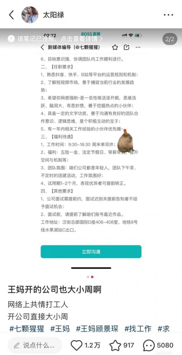 结果却被大家发现,七颗猩猩在招聘软件上开出待遇是大小周。