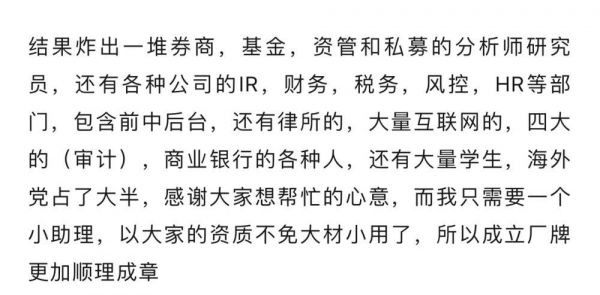 财经领域头部博主@巫师财经 原本只是想招助理和剪辑,结果炸出来一堆各行业的精英,都想给他打下手。