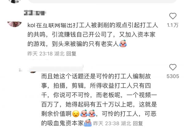 都说打工人共情打工人,年轻人到了社会上守望互助。然而网红当上了老板,就不能把ta当一个普通人、能心往一处使的网友看待。