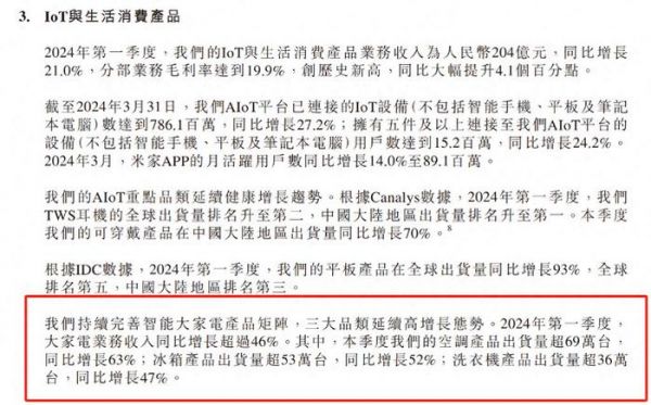 5月23日小米发布了2024年第一季度财报,除了稳定的增长和丰厚的利润,小米在大家电领域的表现尤为惊艳!