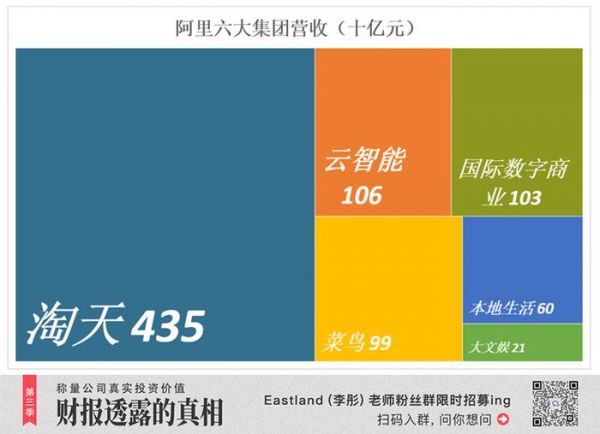 老大淘天集团(4349亿),老二云智能集团(1064亿),老三国际数字商业集团(1026亿),老四菜鸟集团(990亿),老五本地生活集团(598亿),老六大文娱集团(211亿)。