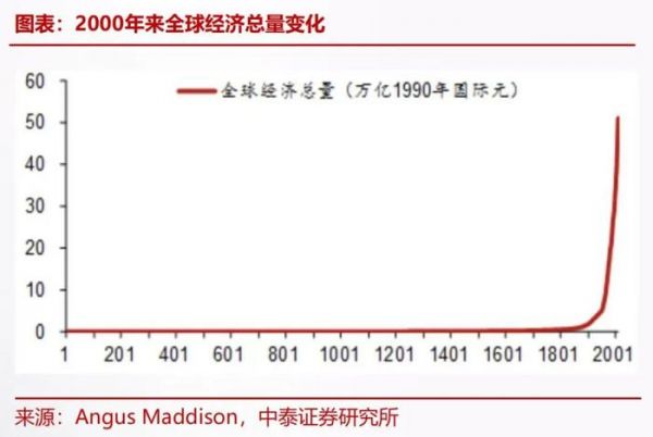 在漫长的2000年的历史过程中,全球劳动生产力、居民收入的增长都是非常缓慢的,从公元元年到1820年全球经济年均增速只有0.1%,人均收入在这1800多年里只增长了40%。