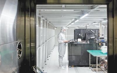穿上防尘服,再经过两次喷淋除尘,记者才能进入创新中心的芯片封装测试验证平台。