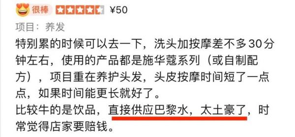 工作顺利时,洗头按摩是打工人对自己的小型嘉奖,“洗头房就是我的充电房,每次项目结束来洗头房不但能洗掉阶段性的疲惫感,还能跟洗发师聊聊天,排解下情绪。洗完之后她还会叮嘱我工作不要太辛苦,再给我手里塞一堆小零食巴黎水作为能量补给包,走出门时,有种游戏血条被补满的幸福感。”