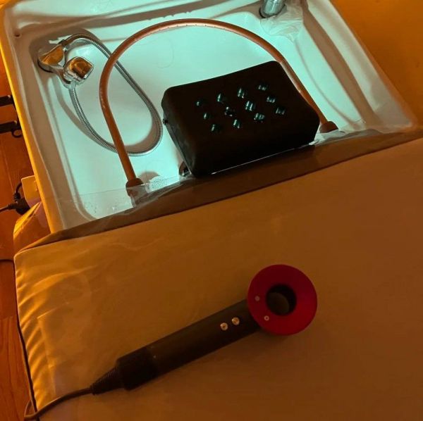 虽然洗头房专注于让人舒适躺平,但它却从不耽误你上班。颈部防水帘做得短短的,不会挡着手让打工人无法及时回复消息,领导急着找你的时候,全店的洗发师会一齐上阵为你助力加速。“有顾客洗到一半,领导问她去哪了,她说‘楼下买个咖啡就回去’,然后我们三个洗发师拿三把吹风机一起吹,只用了5分钟就把她送出门了。”