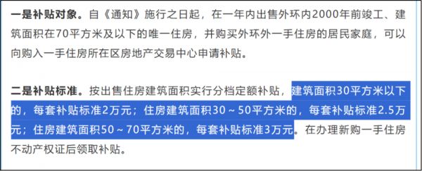 补贴的对象又是2000年前、建面70平以下的房子,然后30平以下的每套补贴2万、30~50平补贴2.5万……