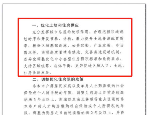 其实政策文件原文里第一条并不是放开限购,而是土地端的调控,这是被放在第一位的。