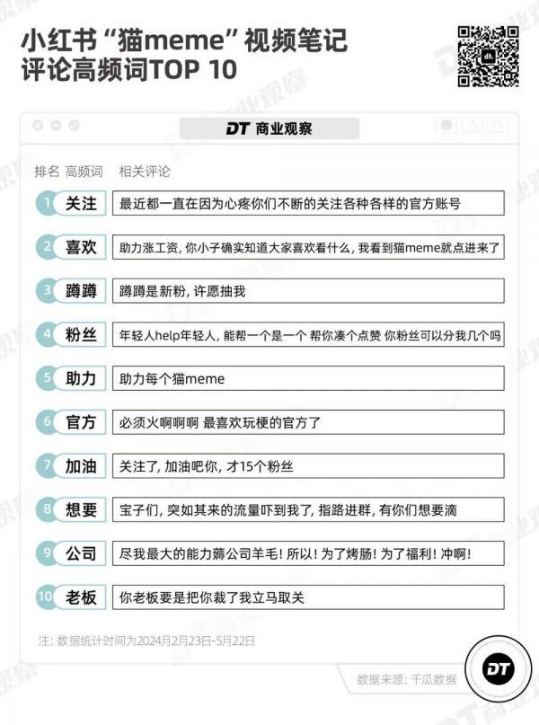 在小红书笔记评论里,就有不少人和猫meme视频的“00后”“打工人”共情,而选择关注账号,助力品牌运营完成KPI。他们主打“年轻人help年轻人”,还有人放出狠话,“你老板要是把你裁了我立马取关”。