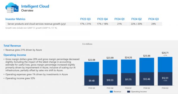 ▲微软财报中智能云的增速表现