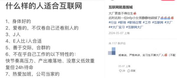 留在互联网大厂的首要条件:身体要好(图源:小红书)