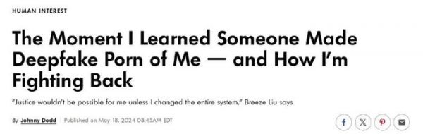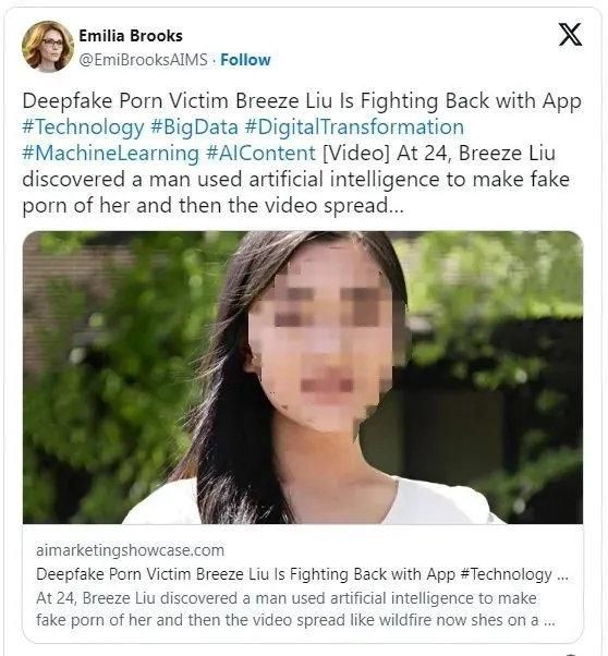 在面对网络上与自己有关的伪造色情内容时,华裔女子刘微风(Breeze Liu,音译)并未选择沉默。她坚定地利用自己所学的知识进行勇敢反击,希望帮助更多的受害者维权。