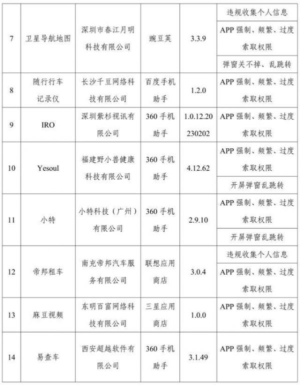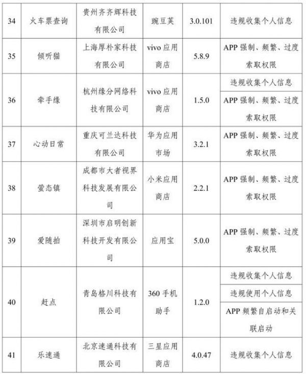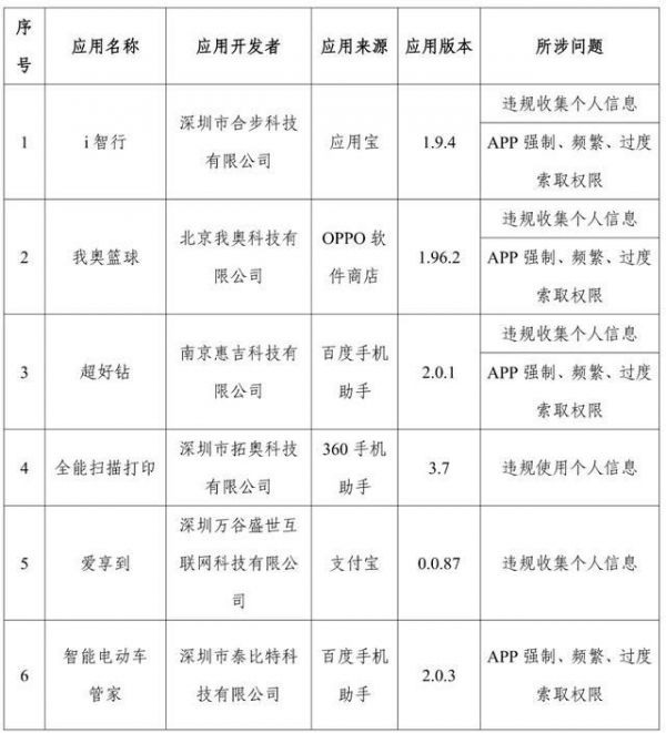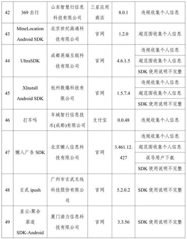 通报存在问题的App(SDK)名单