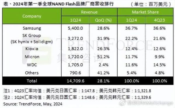 美光超越西数,Q1 NAND Flash品牌厂商最新营收排名出炉