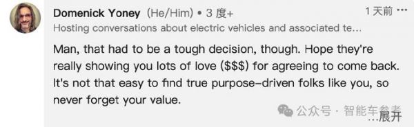 但更多的是称赞他不忘本心,重回特斯拉也是十分有勇气的行为,希望公司能重新发现他的价值: