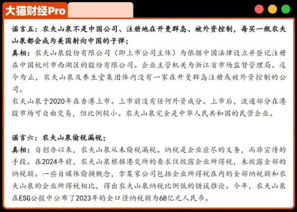 设计媚日?设计原型径山寺,它还在各种古典籍中,一看便知;是不是外资公司呢?天眼查上看一眼就知道,农夫山泉注册地点是杭州;水源地污染?生态环境部可是有公布,被说“污染”的丹江口的水质评级是优;少缴税?上市公司年报、ESG报告等资料都是公开的,2023年全口径纳税额68亿,比同行公开透明得多,更何况,税务局可不是吃素的。