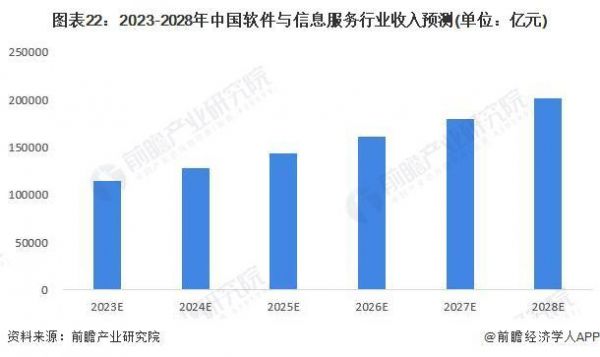 近年来我国软件与信息技术行业政策密集出台,大力支持软件产业发展,涉及包括工业软件、人工智能、云计算、大数据、信息安全等等,驱动行业不断转型升级。经过多年发展,我国软件企业盈利能力和核心竞争力持续提升,形成了大企业和中小企业融通发展的良好局面。未来随着云计算、智慧城市、智能制造等新兴行业的进一步发展渗透,软件与信息技术行业仍然有不可估量的前景空间。综合来看,我国软件与信息技术行业正处于成长期,市场规模增长较快,前瞻初步估计未来我国软件行业复合增长率将达到 20%,预计 2028 年整体行业的市场规模将超 30 万亿元。