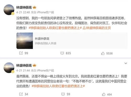 “卖红薯也要把债还上”,钟薛高老板可别是酒后戏言