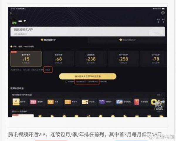 相比之下,腾讯视频开通VIP的选择多达7种,连续包月优惠力度同样不小,其中首三月每月低至15元,这一价格仅为开通一个月会员费用的一半。
