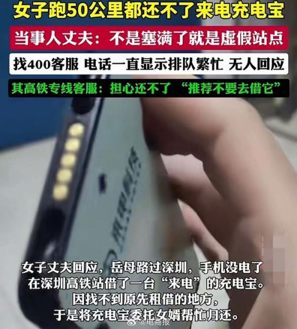女子称跑50公里仍还不了充电宝,质疑故意让人不能按时归还