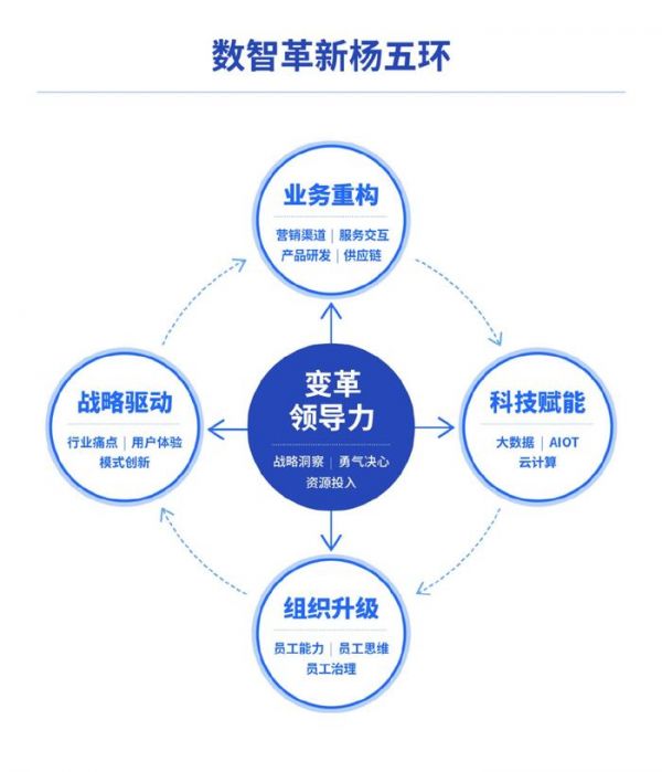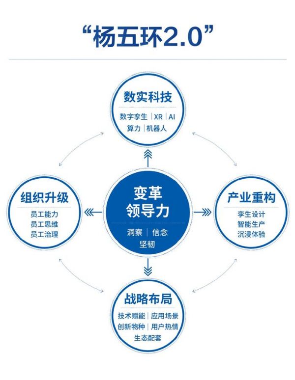 杨国安:“杨五环1.0”即战略驱动、业务重构、科技赋能、组织升级、变革领导力,“杨五环2.0”成了数实科技、产业重构、战略布局、组织升级、变革领导力五大环节。