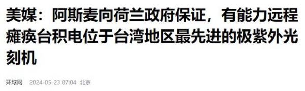 美媒:阿斯麦向荷兰政府保证,有能力远程瘫痪台积电位于台湾地区最先进的极紫外光刻机