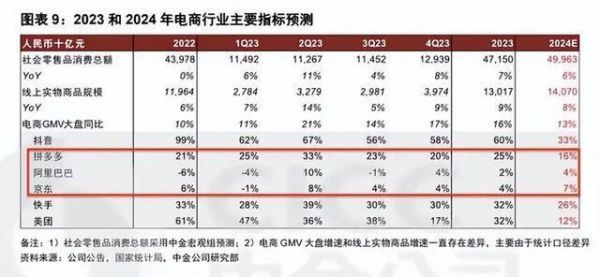 据中金公司研报中电商平台的GMV增速和格局变化,尽管2023年营收上京东位居第一,但GMV体量却不及阿里的8万亿元和拼多多的3.7万亿元,京东在2023年GMV约为3.6万亿元,而拼多多2021年的GMV仅为2.44万亿元,增长速度惊人。