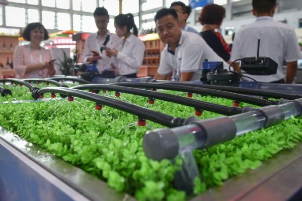 2019年9月5日,在第四届中国-阿拉伯国家博览会高新技术与装备展上,观众参观一款基于农业物联网技术的水肥智能化灌溉系统。新华社记者 李芒茫 摄