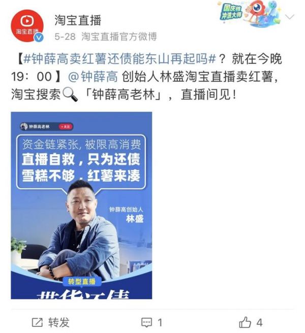 在宣发过程中,淘宝直播不仅给出了资源位和流量倾斜,还专门制作了宣传海报,为林盛的首场直播造势。