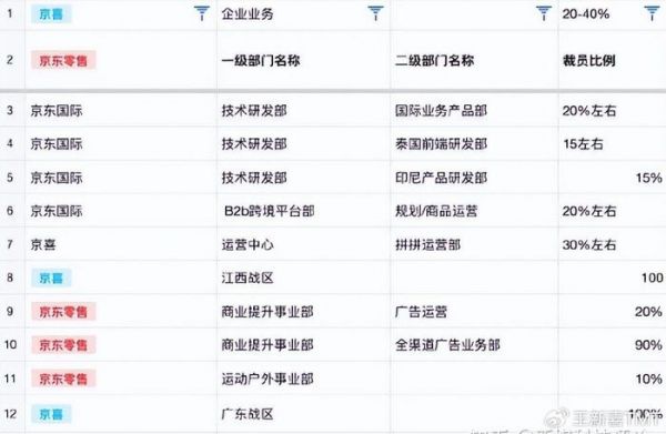 很明显,刘强东想要整治的是“办公室人员”,也就是承担管理、研发、销售、行政和客服职能的员工。1.4 万人代打卡什么概念?相当于白养整个拼多多公司的人了!从网友爆料的信息来看,此次“优化”范围覆盖零售、物流、健康等多个主流板块,其中京喜拼拼为裁员重灾区,脉脉上多名认证为“京东员工”人士透露该部门裁员比例为10%~15%。