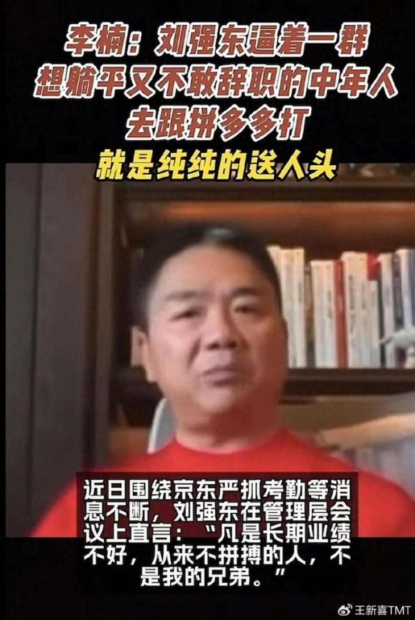 魅族前副总裁李楠认为这是刘强东逼着一群想躺平又不敢辞职的中年人去跟拼多多打,就是纯纯的送人头。