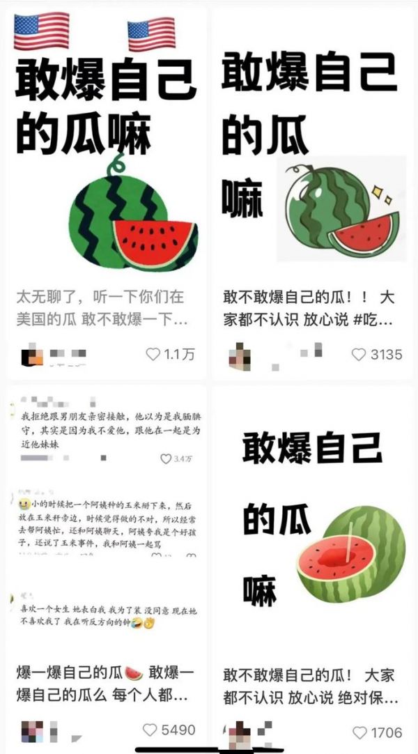 只要用小红书自带封面,编辑一张西瓜图,瓜就从四面八方赶来了:黑帮男人爱上我,我差点成压寨夫人;在某交友app上刷到我妈;开黄腔聊男欢女爱那些事…...