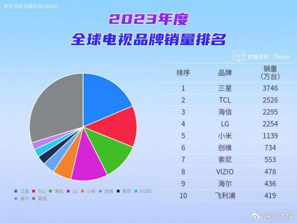 2023Q3全球电视市场报告:三星连续18年蝉联第一、LG称霸OLED市场