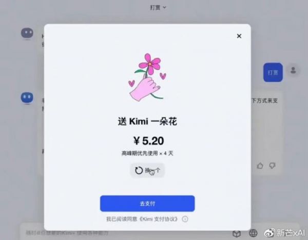 你说不在乎用户体验吧?他们最近还噎着藏着的上线了“打赏”功能。在使用这款应用遇到流量高峰时,Kimi会提示算力不足并弹出一个新的对话条:“急需Kimi?点击这里给Kimi加油,高峰时期优先使用。”