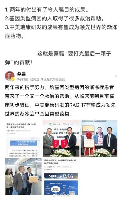 京东原副总蔡磊再辟谣,汇报当前攻克渐冻症的研究成果,鼓舞人心…