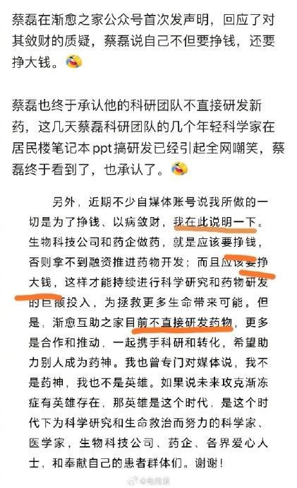 京东原副总蔡磊再辟谣,汇报当前攻克渐冻症的研究成果,鼓舞人心,由三台笔记本组建的两个研发团队引质疑,被吐槽像草台班子。