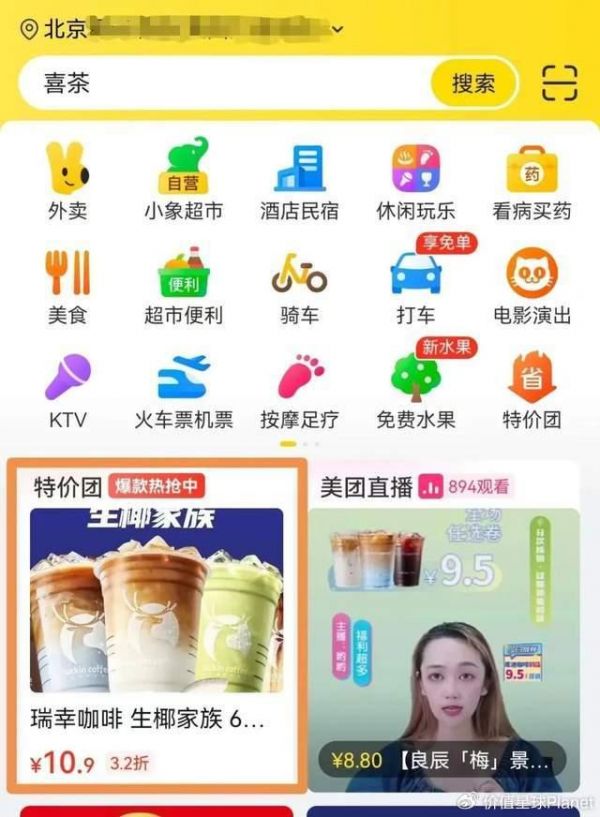 具体来看,特价团里聚合了从餐饮到休闲娱乐的众多本地生活服务,核心思路是以“超大牌+平台补贴”打造超低价心智,用强有力的商品折扣吸引消费者,场景则以“吃喝玩乐”等刚需高频为主。