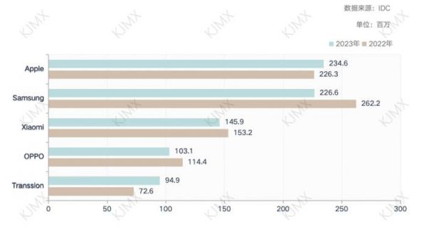 (2023年全球智能手机出货TOP5)在这样的市场趋势下,各品牌应该还会为高端定位产品持续加码,后续的市场竞争有可能会变得越来越激烈。