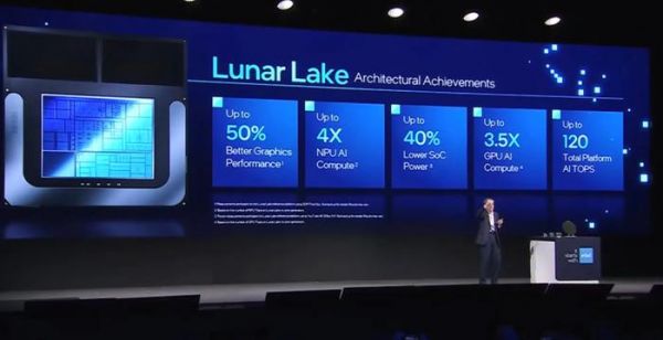 基辛格介绍Lunar Lake围绕AI PC这一台北电脑展的焦点,英特尔团队公布了下一代AI PC旗舰处理器Lunar Lake的架构细节。该处理器整体算力将达到120TOPS。其中,下一代Xe2 GPU提供67TOPS算力,主要用于游戏和AI创作;第四代英特尔NPU提供48TOPS的AI性能,用于AI 助手和创作;CPU提供5TOPS算力,用于轻型 AI 工作负载。
