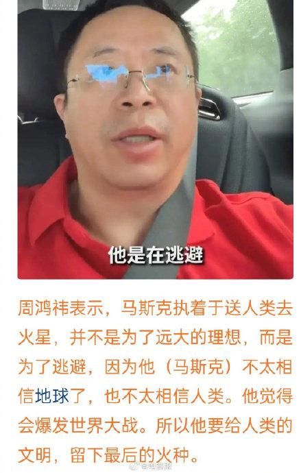 周鸿祎谈马斯克执迷去火星的真正原因:并不是为了远大理想,而是为了逃避。[思考]