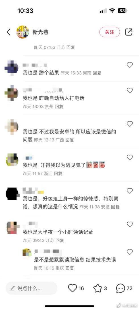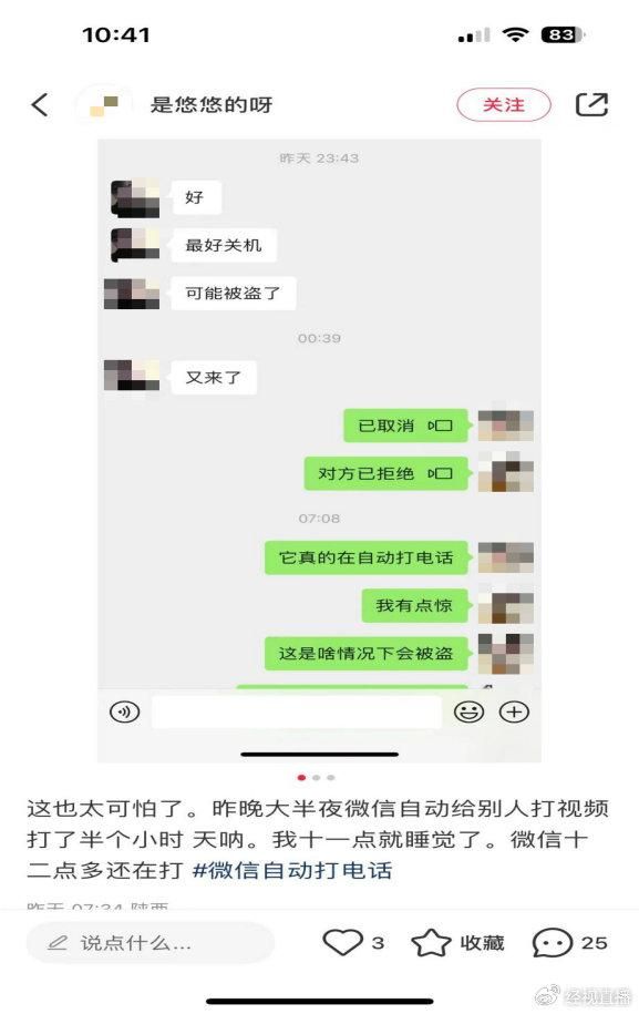 微信出BUG?众多网友反映微信自动给别人打电话