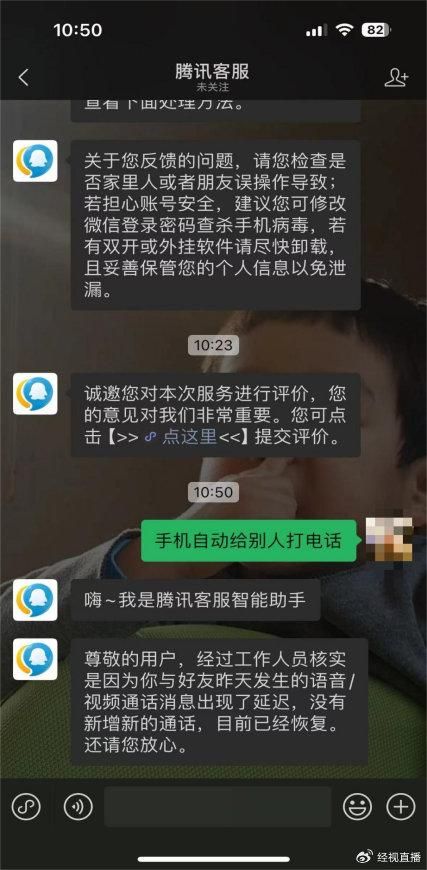 6月8日,经视直播记者向微信手机智能客服反映情况,手机智能客服回应称,“要检查是否家里人或者朋友误操作导致;若担心账号安全,建议您可修改微信登录密码查杀手机病毒,若有双开或外挂软件请尽快卸载,且妥善保管您的个人信息以免泄漏。”