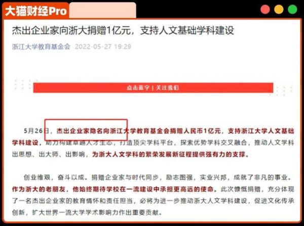 其实这些年钟睒睒给浙大等等好几个大学捐了不少钱,其创办的养生堂集团社会捐赠总额已超9亿人民币。浙江财经大学副校长魏江在给《涌金楼》的文章里提及,“我可以告诉大家一个真实的事,老钟曾一次性给某大学捐赠1个亿,不报道、不搞仪式、不留名,而且这样的事情不少。”