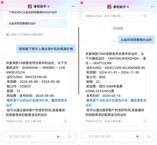 “如今,销售同事只需要跟AI助理简单对话,就能获取到包括合适价格、承运公司在内的最佳方案。而且销售还可以增加一些筛选条件来锁定需要的运价。”李刚补充道。