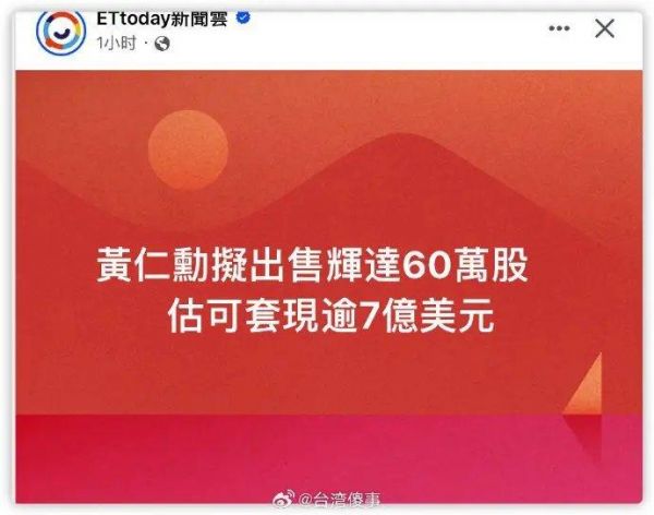 英伟达的市值炒这么高,是因为大家的预期。事实上面预期不会非常好,只是很多炒股的人搞不明白。韭菜就是韭菜,黄仁勋自己为什么想套现?他自己也是非常清楚,今天英伟达的股价已经是高处不胜寒,他的对手们很快就要出手了。