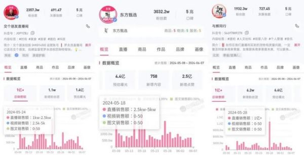 不过,曾经被外界视为抖音直播带货一哥的交个朋友,其当前的带货数据却不及更晚下场直播的东方甄选。截至发稿,东方甄选主账号的粉丝数为3032万,而交个朋友主账号的粉丝数为2357万。