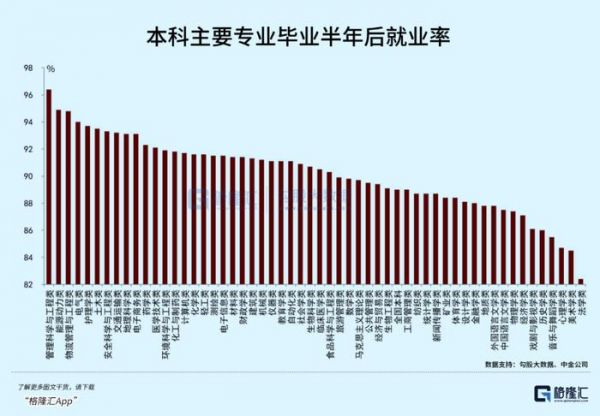 看下面这张图,工科和文科应届生的就业率,完全就是两个极端。