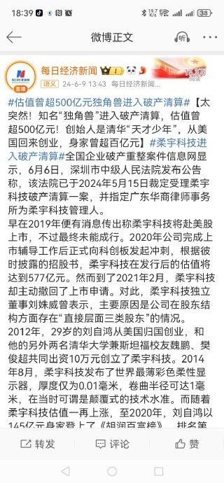 #估值曾超500亿元独角兽进入破产清算#柔宇进入破产清算,真的令人遗憾,这个企业不是完全没有技术,也是有很多的机会,以我的观察,这个企业的失败,还是创始人的个性。所谓性格决定命运,性格也决定一个国家,性格更决定一个企业。